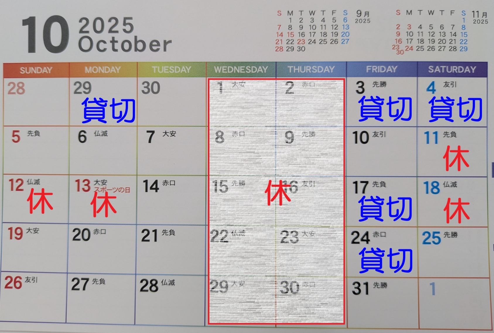 「休」以外の土日は通常営業