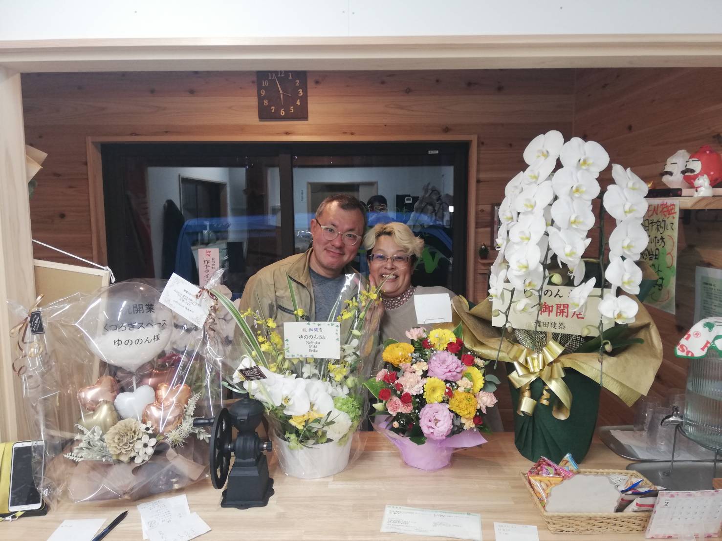 20240315_開店準備!2024年03月15日 21:40いよいよ明日は開店。大勢の方々から花を送っていただき、ありがとうございます。(敬称略:権田建築、作手ライフ、SOMEDAY、店長の姉、代表のいとこ、代表のママ友))看板のライトアップも良い感じ。作手高原の気温通常営業開始♪