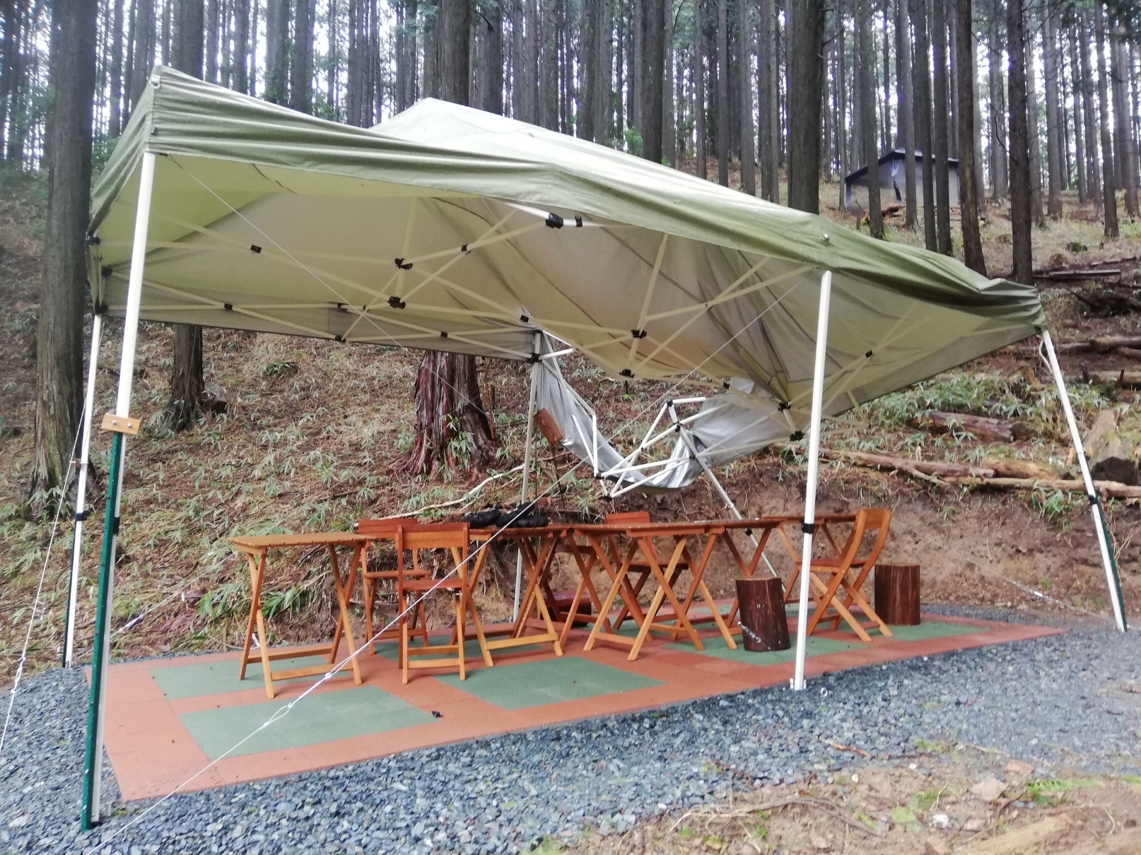 火曜日の朝方の豪雨?で、ゆののんのフリースペースのテント、壊れました(´;ω;`)