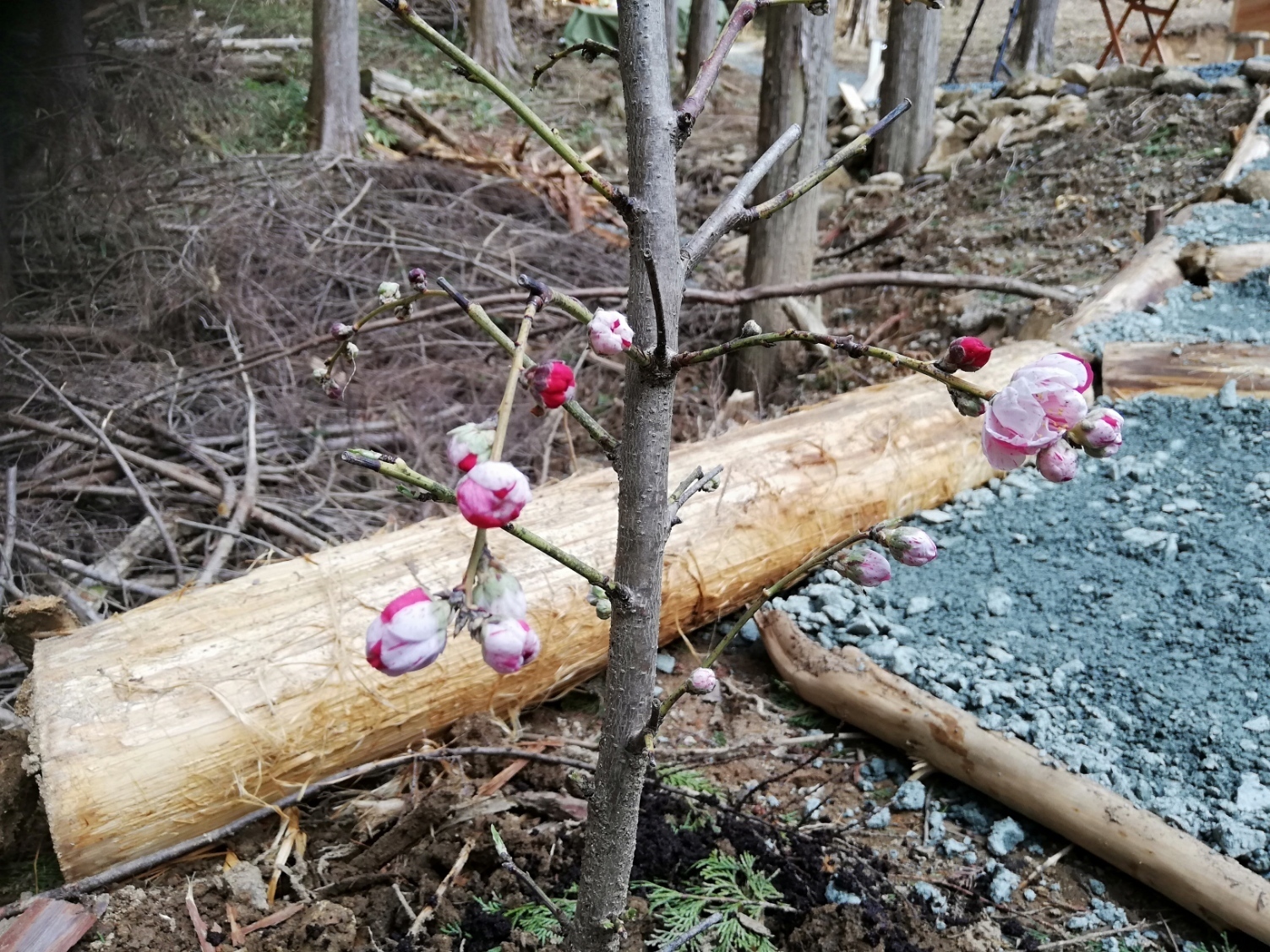 ゆののん開店記念に、カエル池エリアに桃の木を植えました。
