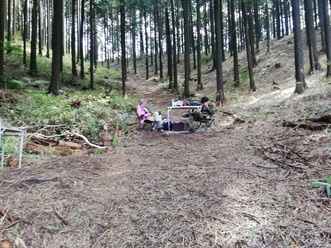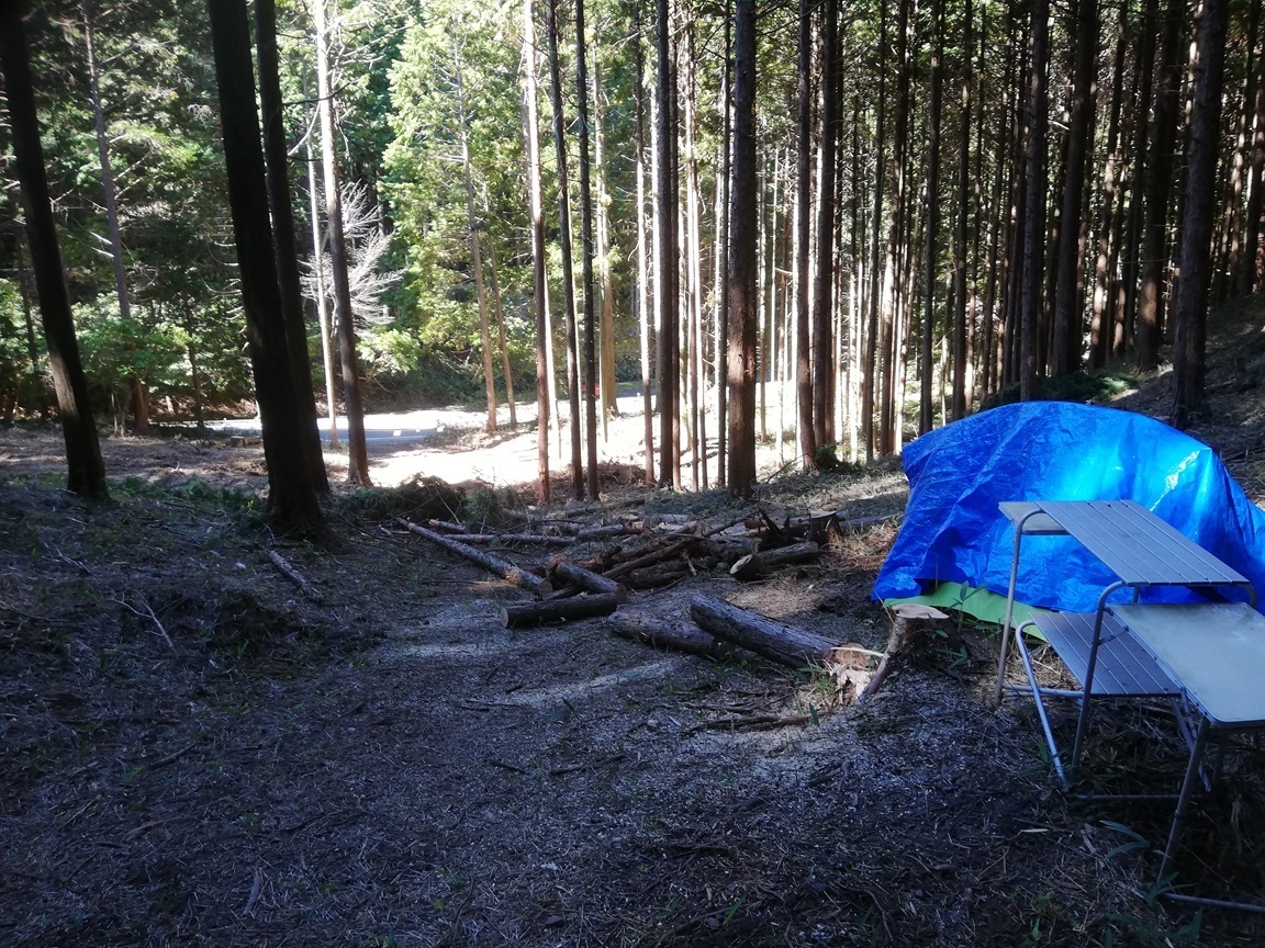 ②休憩場所から森の入口を見た写真。自分で伐採した木がゴロゴロ転がっています